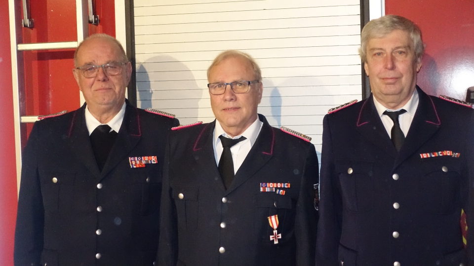 BM Gunter Beck, LM Paul Burmester für 50 Jahre Mitgliedschaft und OBM Dieter Schlottmann für 50 Jahre Aktiven Dienst.