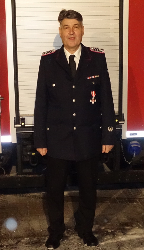 Das Brandschutz Ehrenzeichen am Bande in Silber für 25 Jahre aktiven Dienst erhielt OLM Günter Hansen, die Ehrung nahm HBM3 Henning Wittkamp vor.